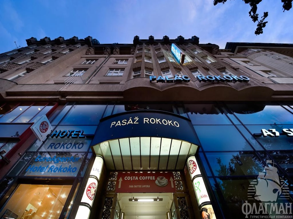 Отель Рококо 4* находится в самом центре Праги, на Вацлавской площади, в здании Дворца Рококо (1912 - 1916 гг., проект Эмиля Краличка), которое охраняется как памятник архитектуры. Пассаж Rokoko соединен проходами со старейшим пассажем Lucerna и пассажем U Nováků, которые скрывают под своей крышей целый городок: сеть улочек, площадей и перекрестков в квартале между Вацлавской площадью и улицами Vodičkova, V Jámě и Štěpánská. Рядом с отелем множество памятников истории и культуры, музеев, ресторанов, театров и клубов. Интерьеры отеля оформлены в стиле модерн. Рекомендуем для комфортного отдыха.