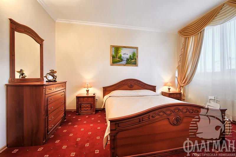 - 2-местный 1 категории (макс. 2+1 чел., 18,8 кв. м, телевизор, спутниковое телевидение, ванна, туалет, фен, тапочки, холодильник, телефон, две односпальные или одна двуспальная кровать, еврораскладушка).