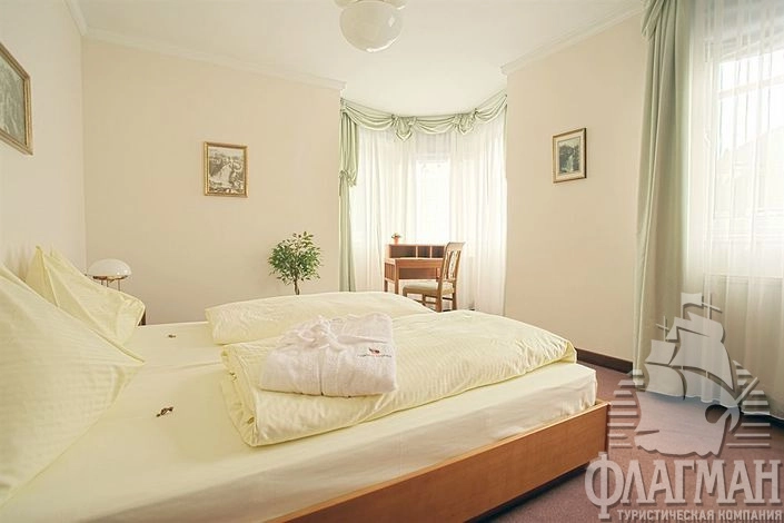 - 3 Raum suite (в главном здании и в корпусе Residenz, на 3–6 чел., 70 м2, 2 спальные комнаты, гостиная с раскладным диваном на 2 чел., обеденный уголок и небольшая кухня)