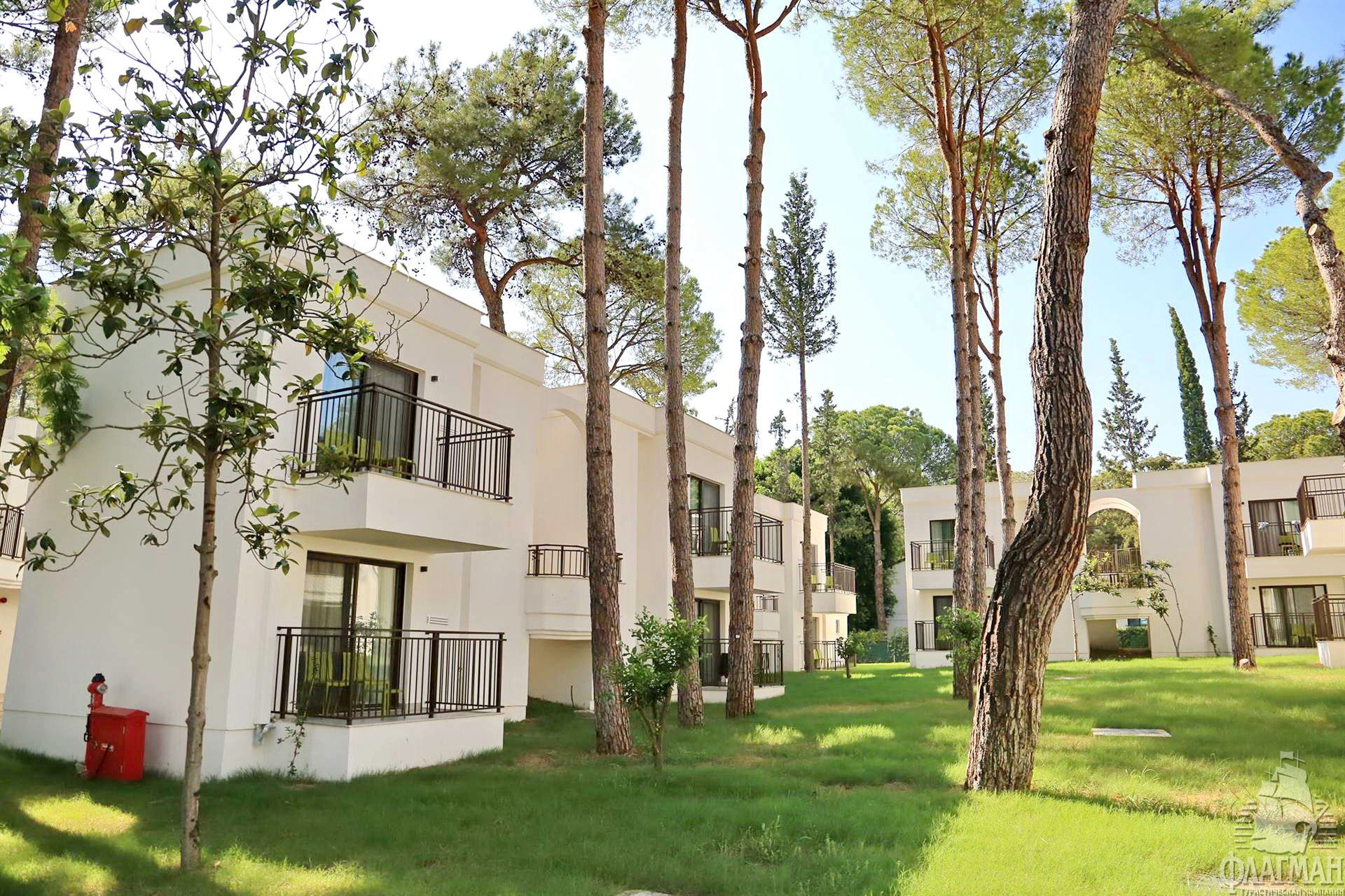 Отель состоит из 68-ми двух- и трехэтажных коттеджей.