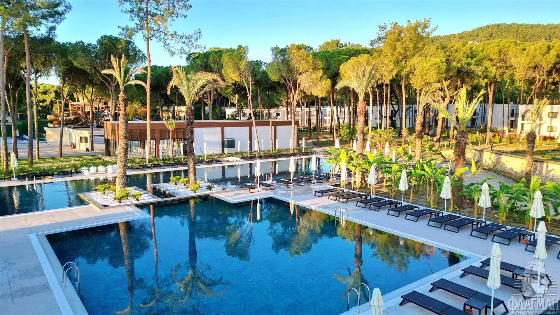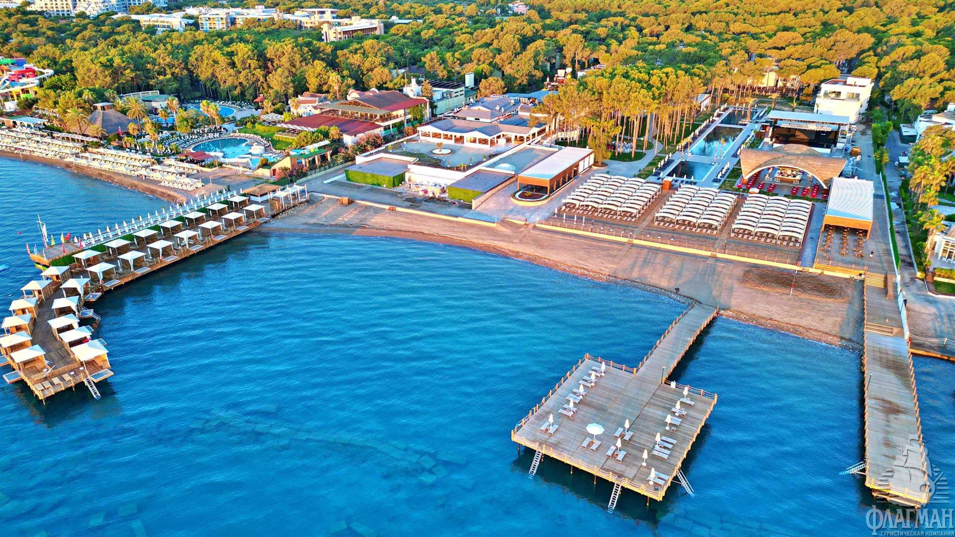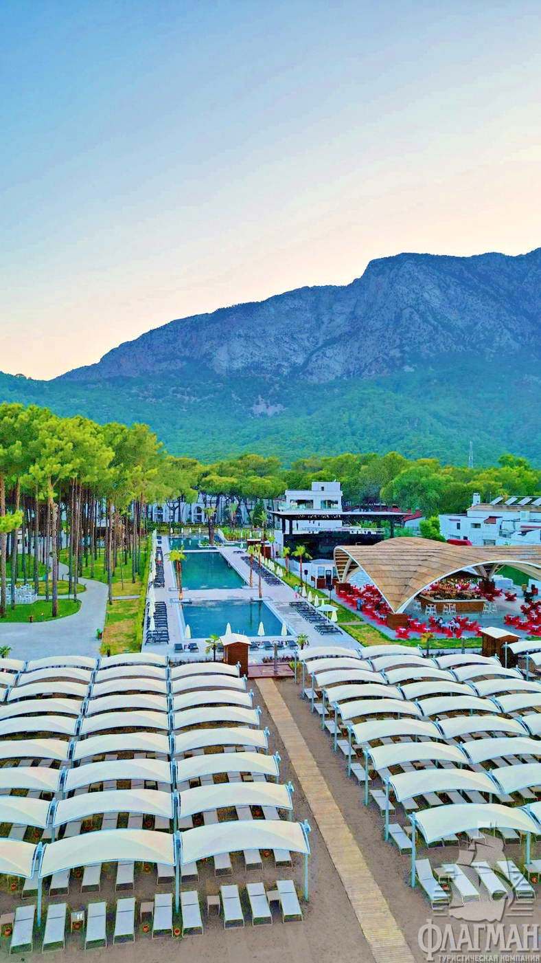 Расположен в 41 км от аэропорта г. Анталья, в 15 км от г. Кемер, в поселке Бельдиби, на самом берегу моря.