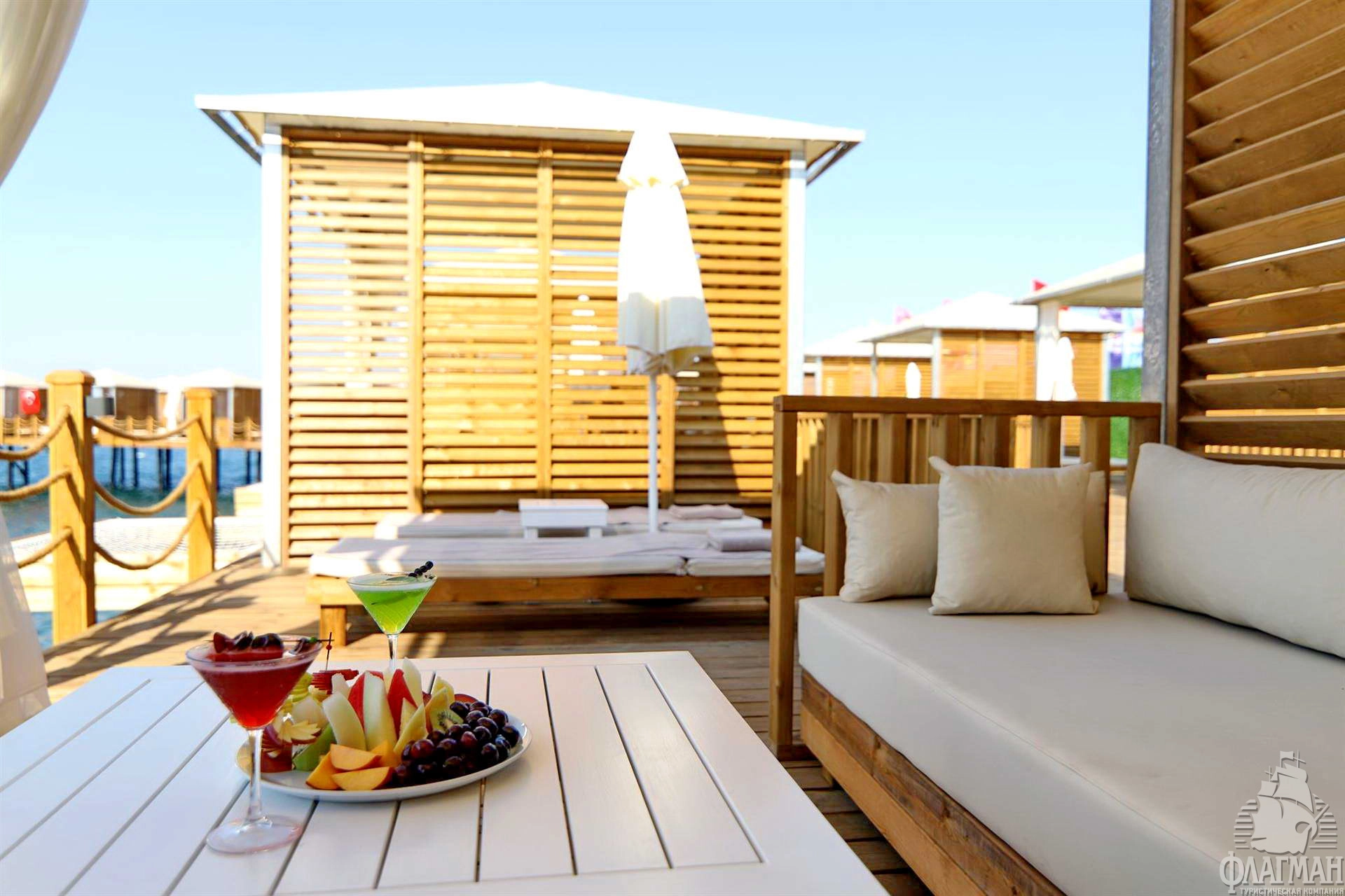 - 2 пирса (с шезлонгами и зонтами), кабаны на пирсе (за доп. плату)