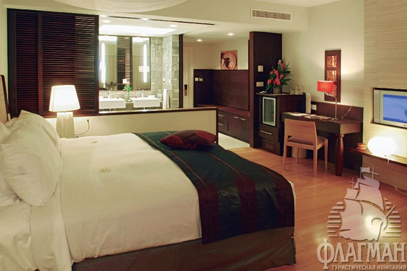 - Prestige Suite (60 кв.м) Состоит из спальни с кроватью king-size или двумя односпальными кроватями, зоны отдыха, ванной комнаты открытого плана, патио с садиком, большой ванной и душем на открытом воздухе. Номера состоят из бунгало на 2 номера, которые можно соединять для отдыха семьей или компанией