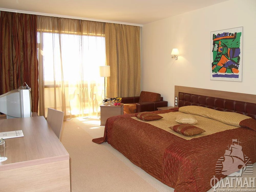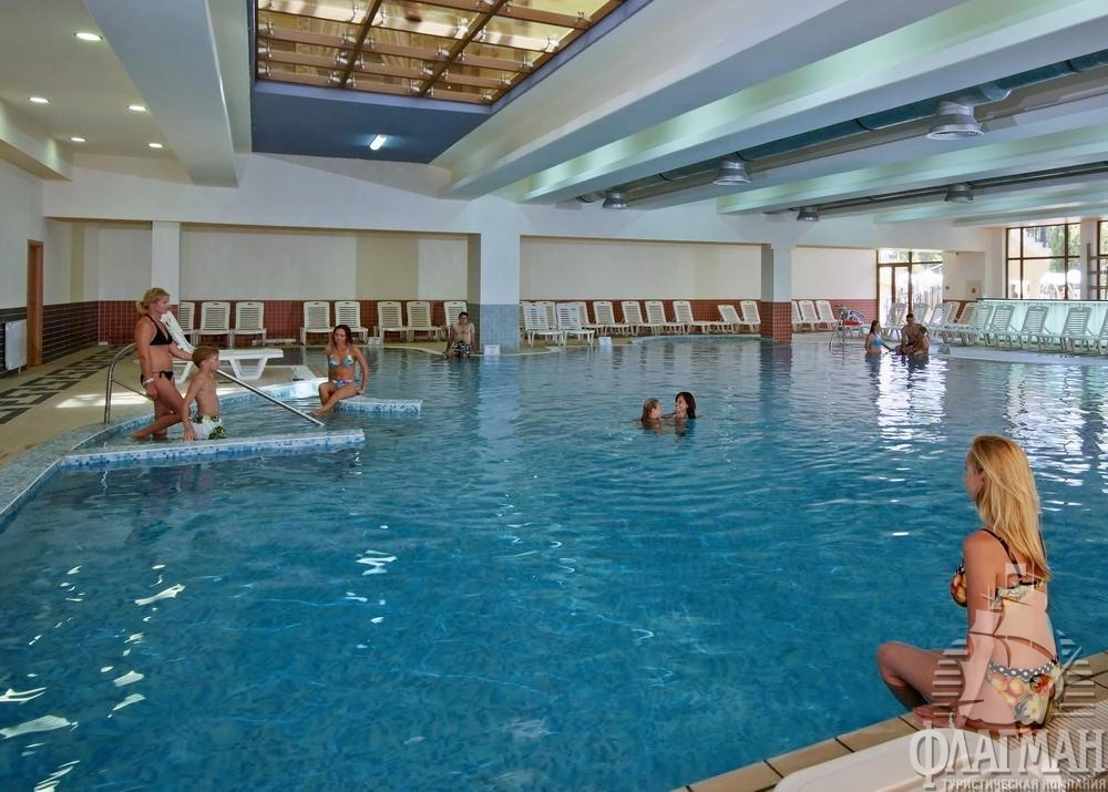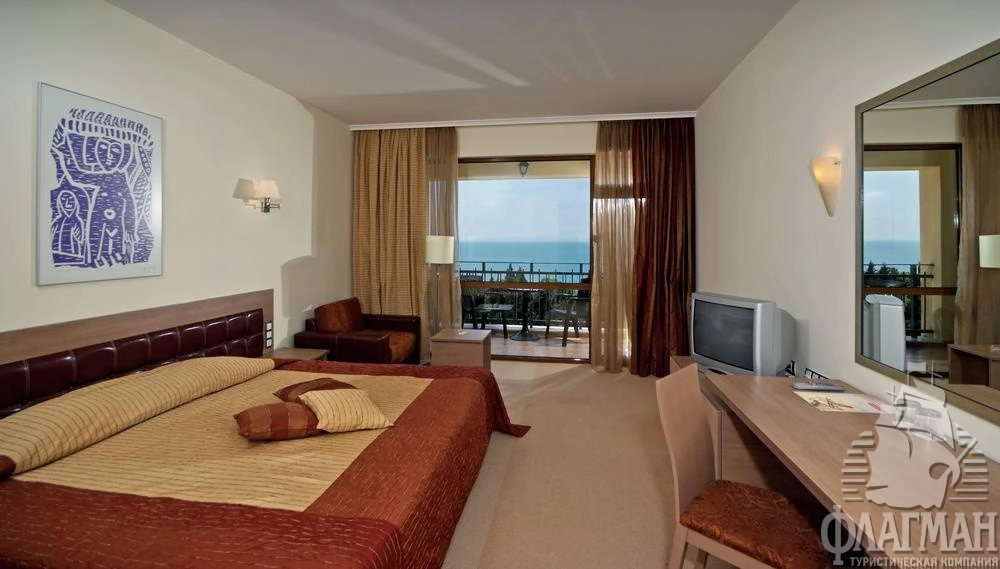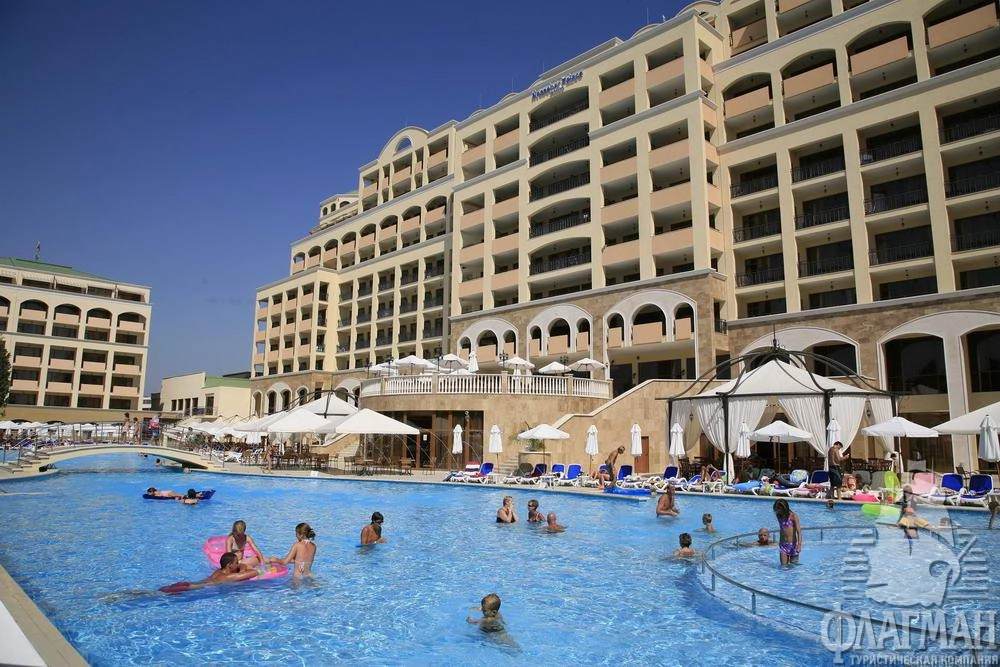 Соль Несебр Палас 5* – респектабельный отель с большой красивой территорией, хороший SPA-центр, отличное питание и обслуживание. Узкую пляжную полосу и платные зонтики и шезлонги на пляже отель компенсирует множеством бассейнов, большой террасой для загорания, покрытой травой, с бесплатными зонтиками и шезлонгами. Для детей есть отдельный бассейн с аквапарком, работает детский клуб и анимация. Подходит для взыскательных туристов, желающих спокойно отдохнуть и расслабиться, а так же для проведения деловых встреч и конференций.
