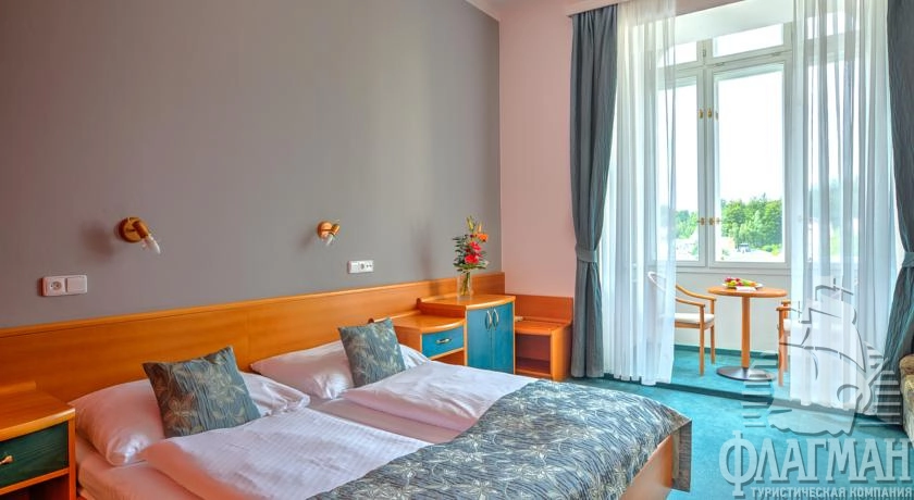 Отель находится в самом центре курортного города Марианские Лазни, прямо над главной курортной колоннадой.