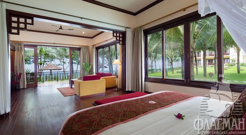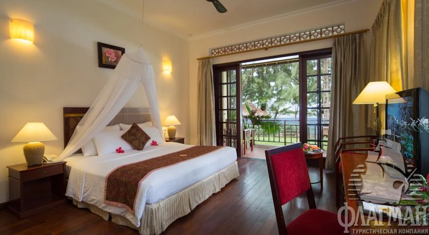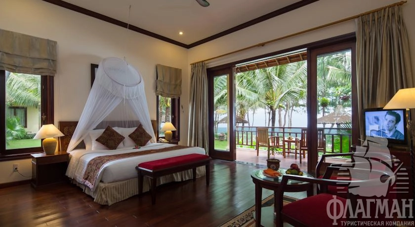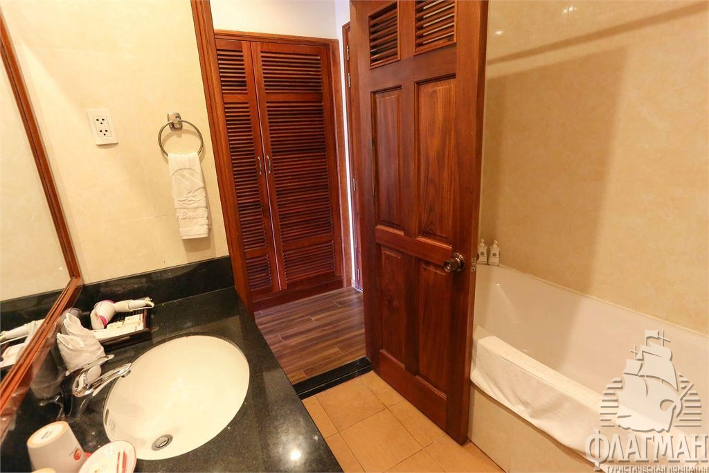 - 1 Beach front villa - площадь номера 60 кв.м, макс. 2 взр.+2 реб. до 12 лет, зоны спальни и гостиной, межкомнатная дверь ванна, балкон, вид на море
