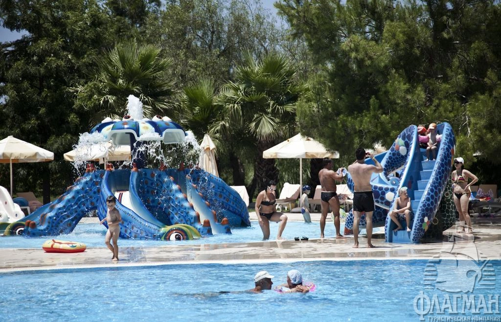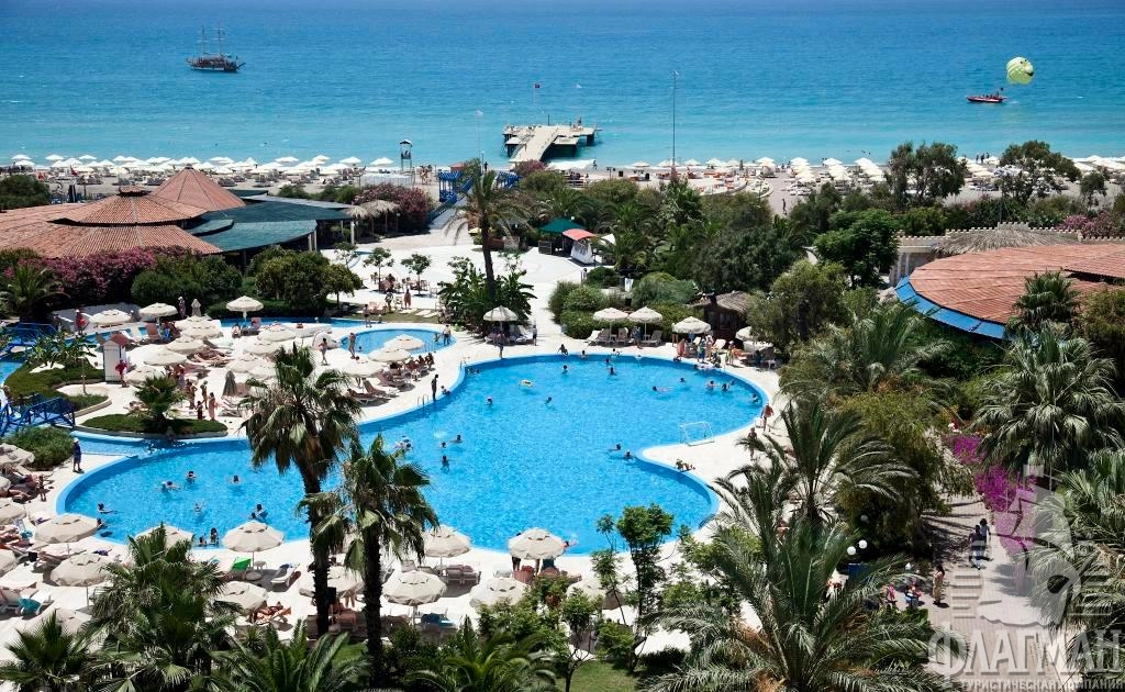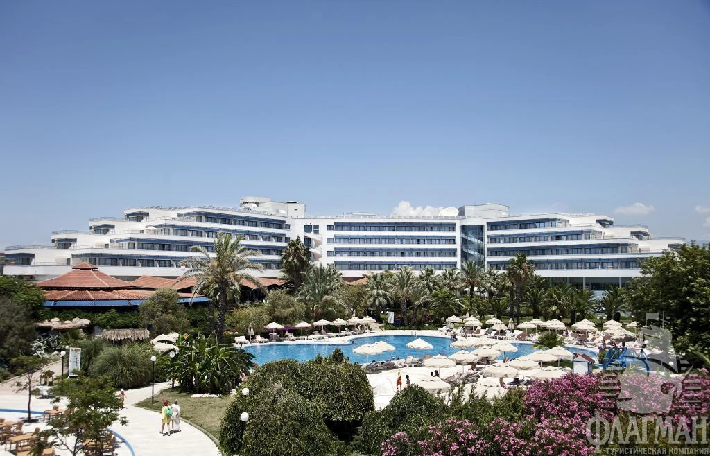 Санрайз Ресорт 5* – прекрасный клубный отель у моря с шикарной зелёной территорией и собственным песчано-галечным пляжем. Возможно проживание в здании отеля или в отдельных клубных домиках (там номера чуть больше). В отеле множество развлечений для взрослых и детей: хороший аквапарк, 30 теннисных кортов, открытый кинотеатр, 5 баров, СПА- и талассо-центр, даже есть возможность покататься на ледовом катке в соседнем отеле STARLIGHT CONVENTION CENTER THALASSO & SPA 5* . В "Санрайз Парк" хорошая анимация, питание по системе "ультра всё включено", 12 ресторанов а-ла карт с различными кухнями мира.