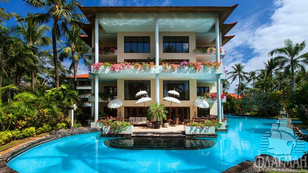 Расположен на курорте Нуса Дуа, в 20 минутах езды от аэропорта, в 5 минутах езды от торгового центра, в нескольких минутах ходьбы от пляжа.