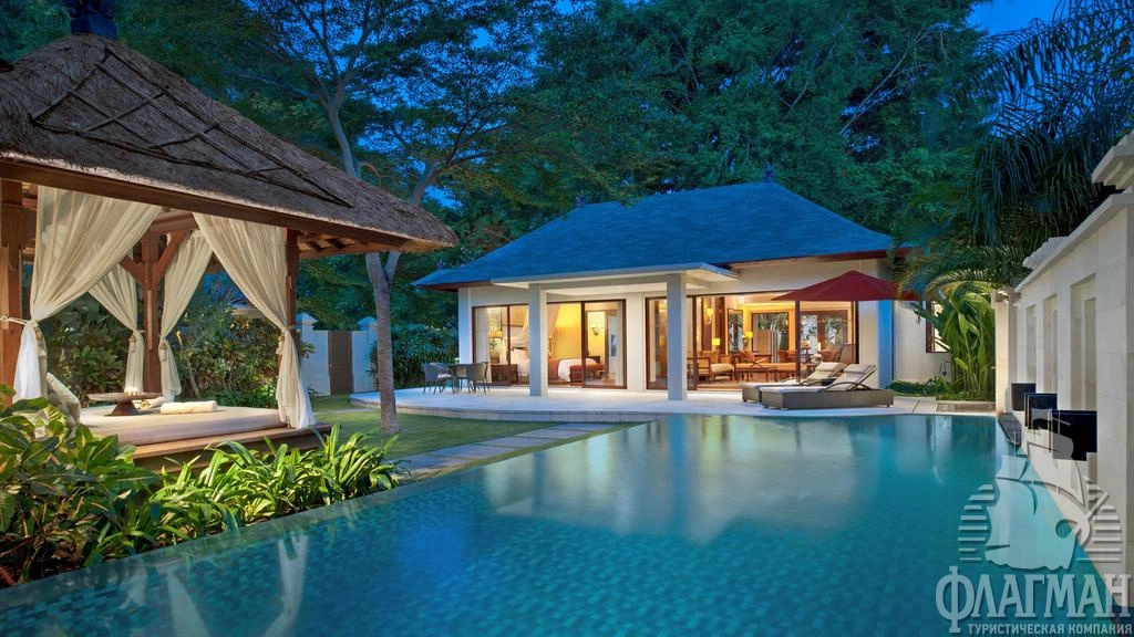 - 1 Two-bedroom Private Villa (750 м2, частный бассейн 48 м2, сад, зона для массажа на открытом воздухе, гостиная, обеденная зона, кухня, 2 спальни).
