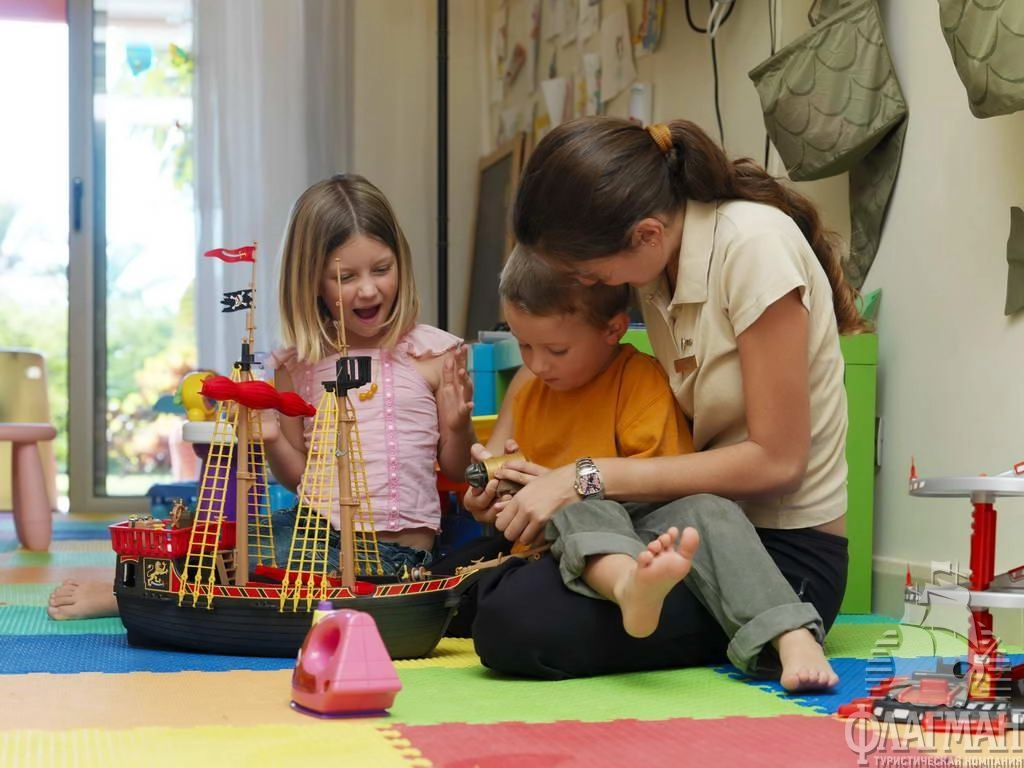 - детский клуб (4–11 лет, с 10:00 до 18:00, бесплатно; c 18:00 до 24:00 платно; есть возможность питания – платно. предварительное бронирование обязательно)