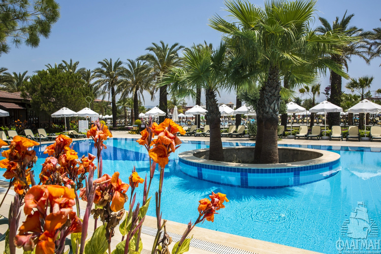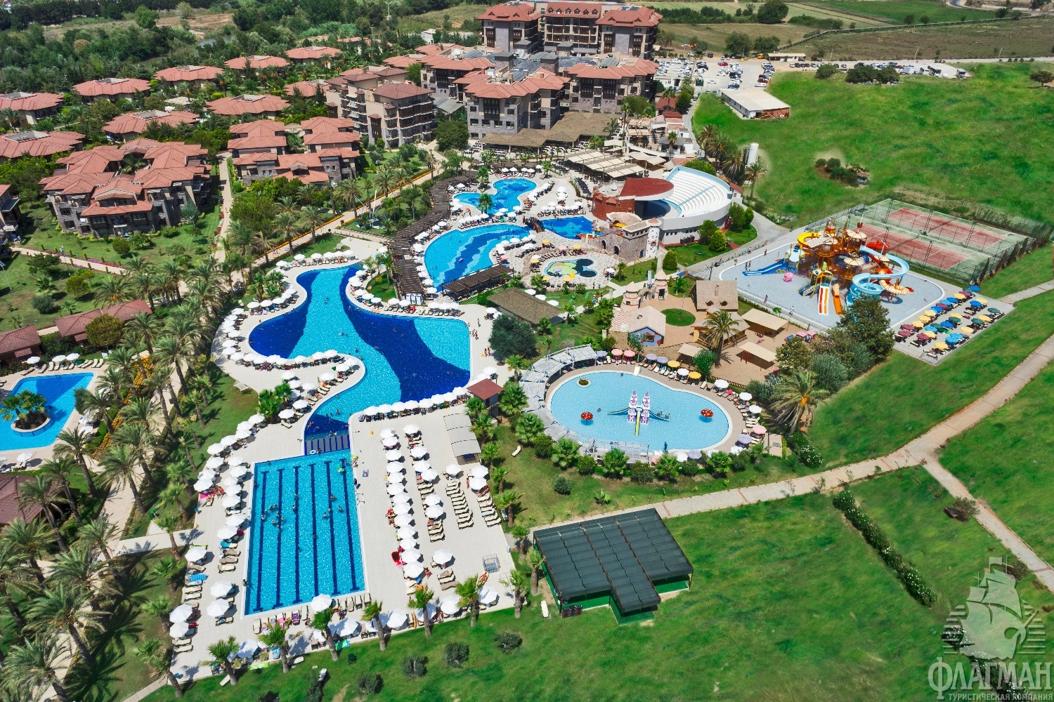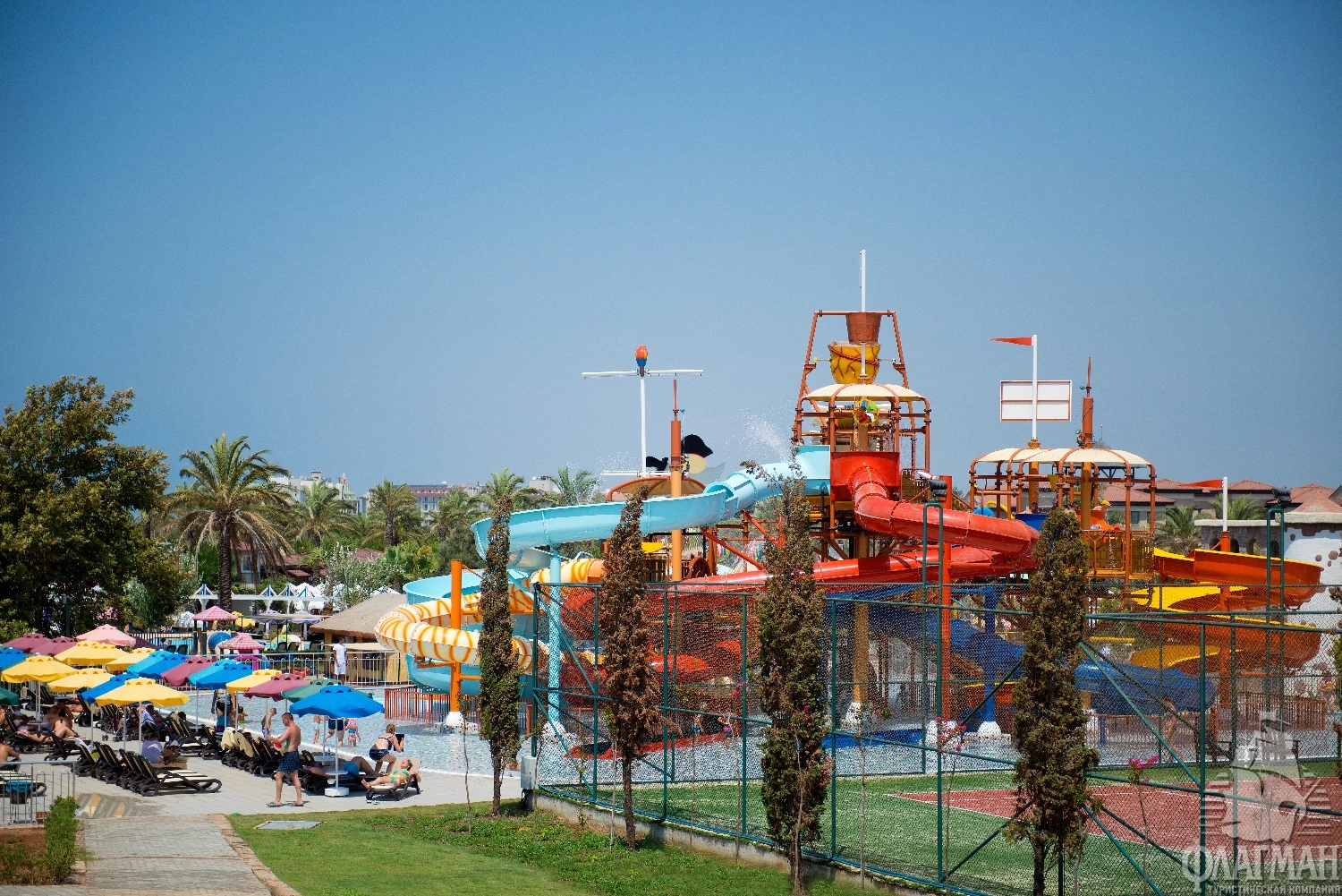 Расположен на побережье Средиземного моря, в курортном районе Кызылот, в 14 км от Манавгата, в 80 км от аэропорта Анталии.