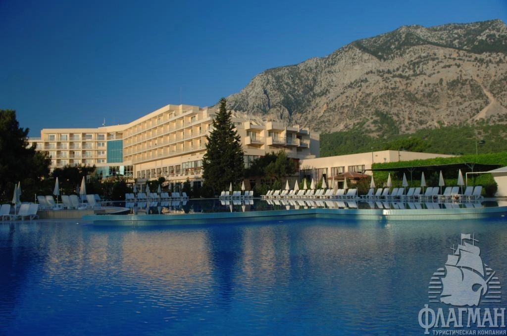 Расположен в 50 км от аэропорта г. Анталья, в 18 км от г. Кемер, в поселке Бельдиби, на берегу моря.