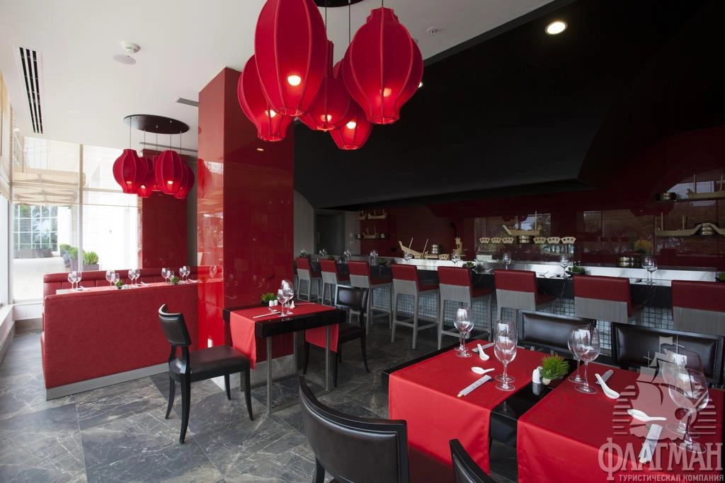 - рестораны a la carte: 4 (барбекю, рыбный – по предварительной записи, бесплатно; итальянский, суши – плата за резервацию)