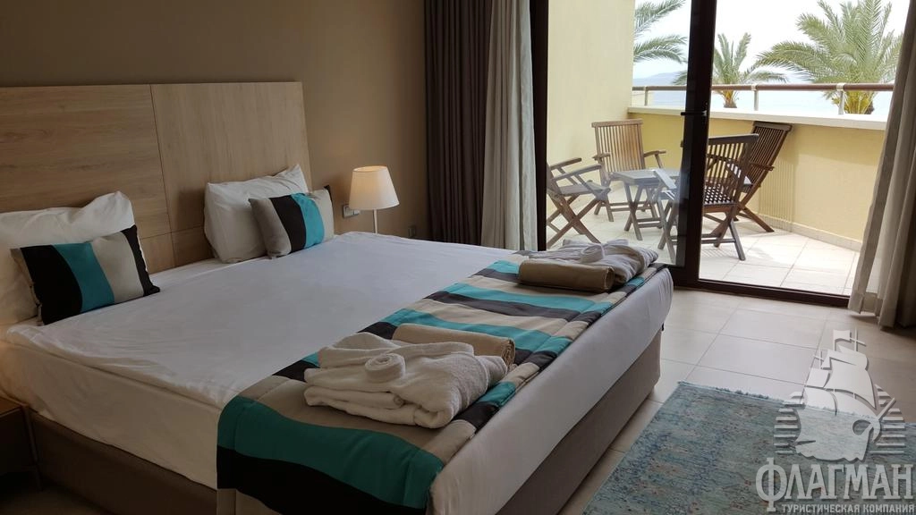 - 15 двухкомнатных family room (11 номеров с видом на море, 2 спальни с дверью, макс. 4 чел., 45 м2);