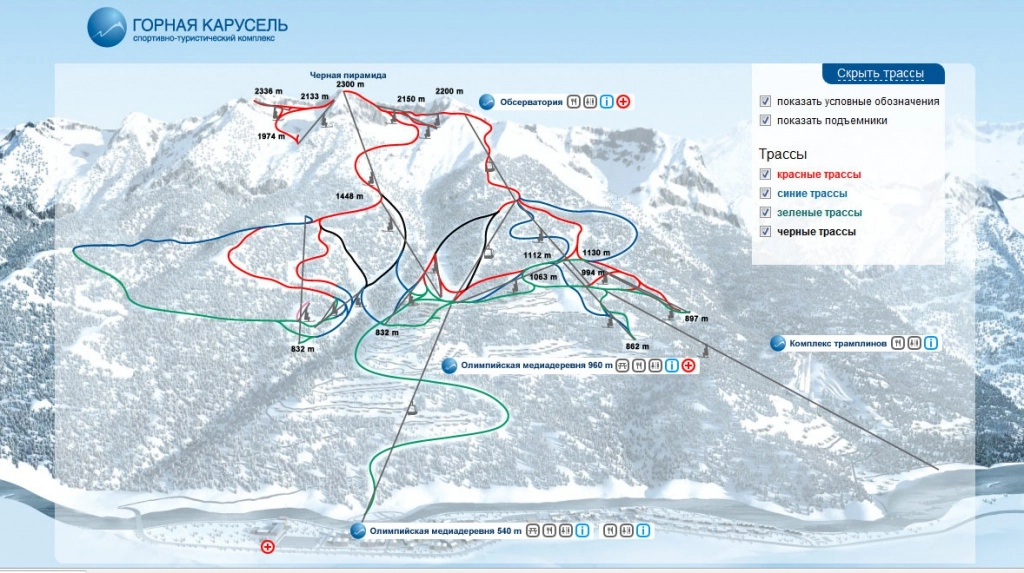 ![]() Схема трасс Газпром | ![]() Схема трасс Роза Хутор | ![]() Схема трасс Горная Карусель |