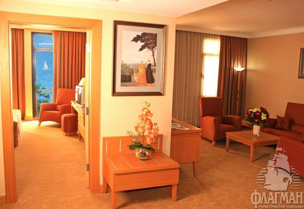 - рестораны a la carte: 4 (турецкий, итальянский, рыбный, дальневосточный, по предварительной записи, посещение 1 раз в неделю – бесплатно)