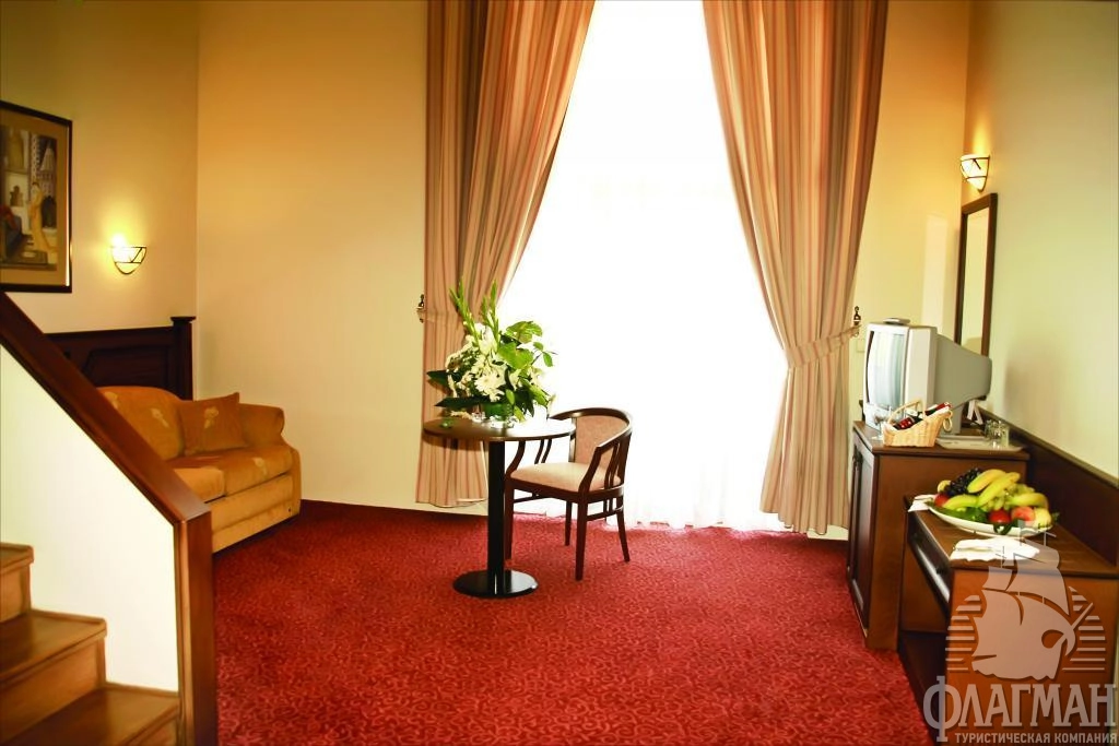 - 7 двухкомнатных suite room (гостиная, спальня с дверью с french bed, 2 балкона, электрический чайник, макс. 3+1 чел., 55 м2).