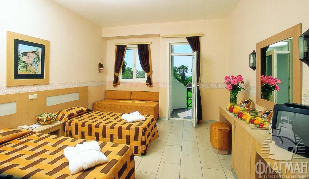 - 10 двухкомнатных family room (2 спальни с дверью, 2 TВ, балкон, макс. 5 чел., 44 м2).