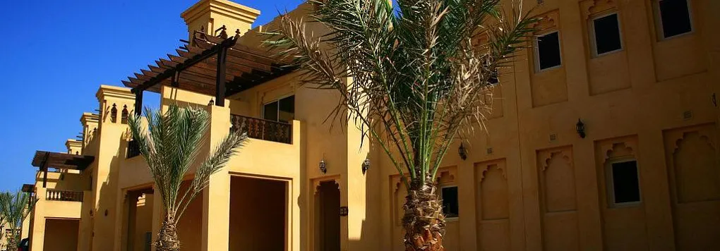 Отель является частью комплекса Al Hamra Fort Hotel & Beach Resort и представляет собой отдельно стоящий городок в арабском стиле из 28-ми двухэтажных коттеджей с видом на гольф-поля.