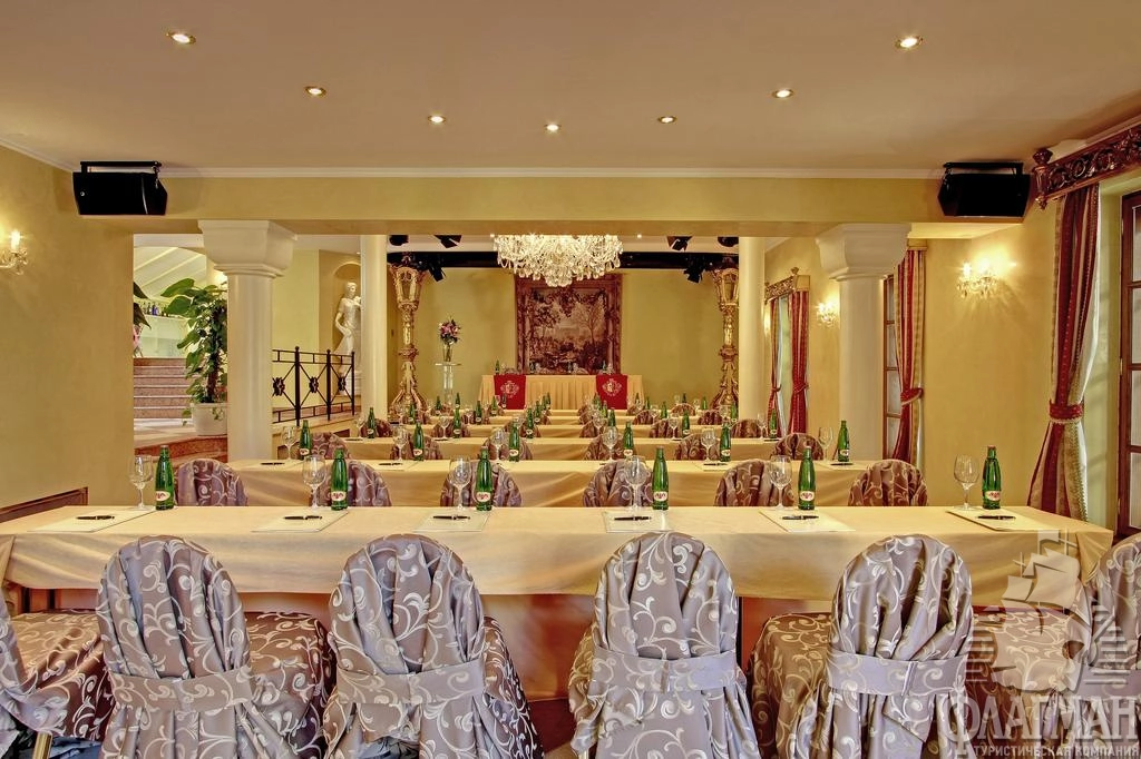 - 2 зала максимальной вместимостью 30 и 100 человек соответственно, отелем предоставляются услуги по проведению и сопровождению мероприятий, в том числе свадебных торжеств