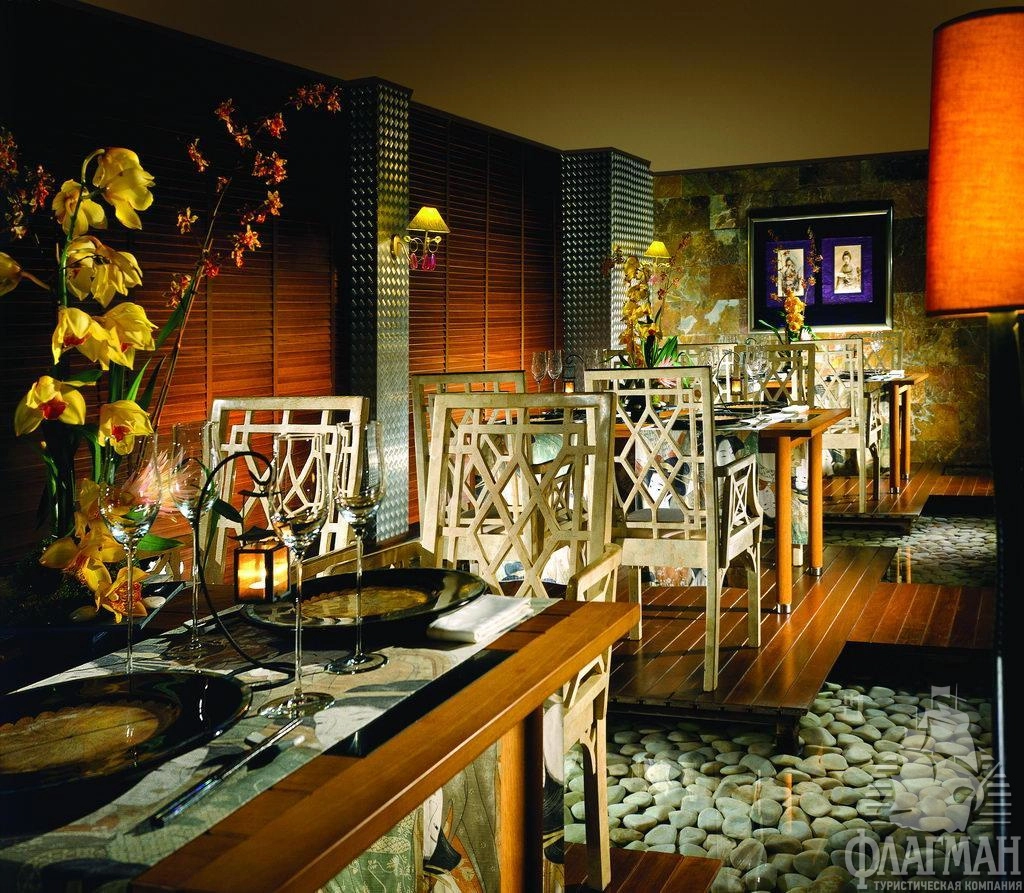 - рестораны: 2 (эксклюзивный японский ресторан Minamo: дегустационное меню на базе суши или сашими в зависимости от рыбы дня; по предварительному заказу не менее чем за 24 часа, вход ровно в 21:30, закрыт 2 дня в неделю; The Grand Butterfly Garden)
