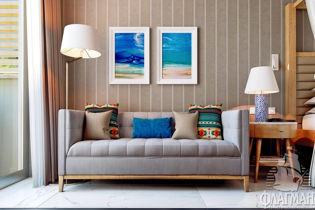 - Deluxe Sea View Room (макс. 2 чел., 32 м2) - однокомнатный номер c гостевым уголком, ванная комната, балкон с видом на море.