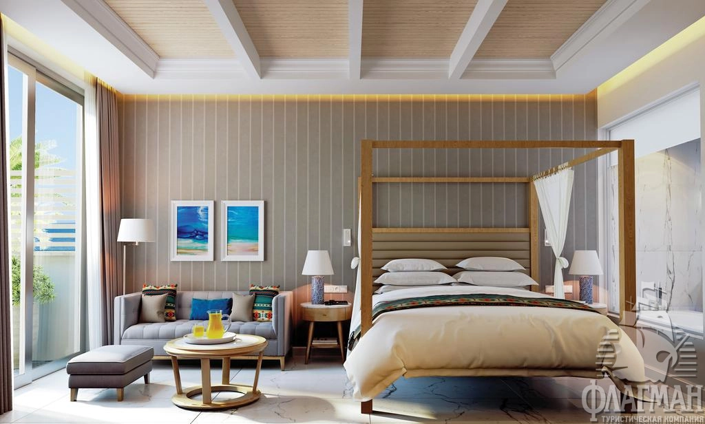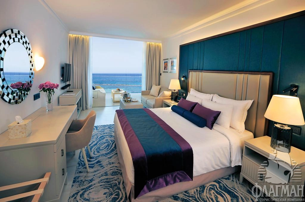 - One Bedroom Executive Suite Sea View (макс. 2 чел., 89 м2) –двухкомнатный номер c отдельной спальней и гостиной, ванная комната, просторный балкон с 2 шезлонгами, вид на море.