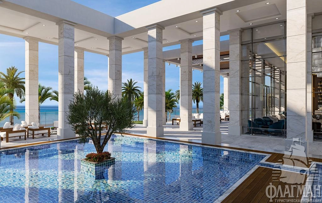 - Superior Cabana With Private Pool ( макс. 2 чел., 32 м2) - просторный однокомнатный номер c гостевым уголком, ванная комната, терраса с частным бассейном (20 м2), есть 2 шезлонга и зонт, вид на море.