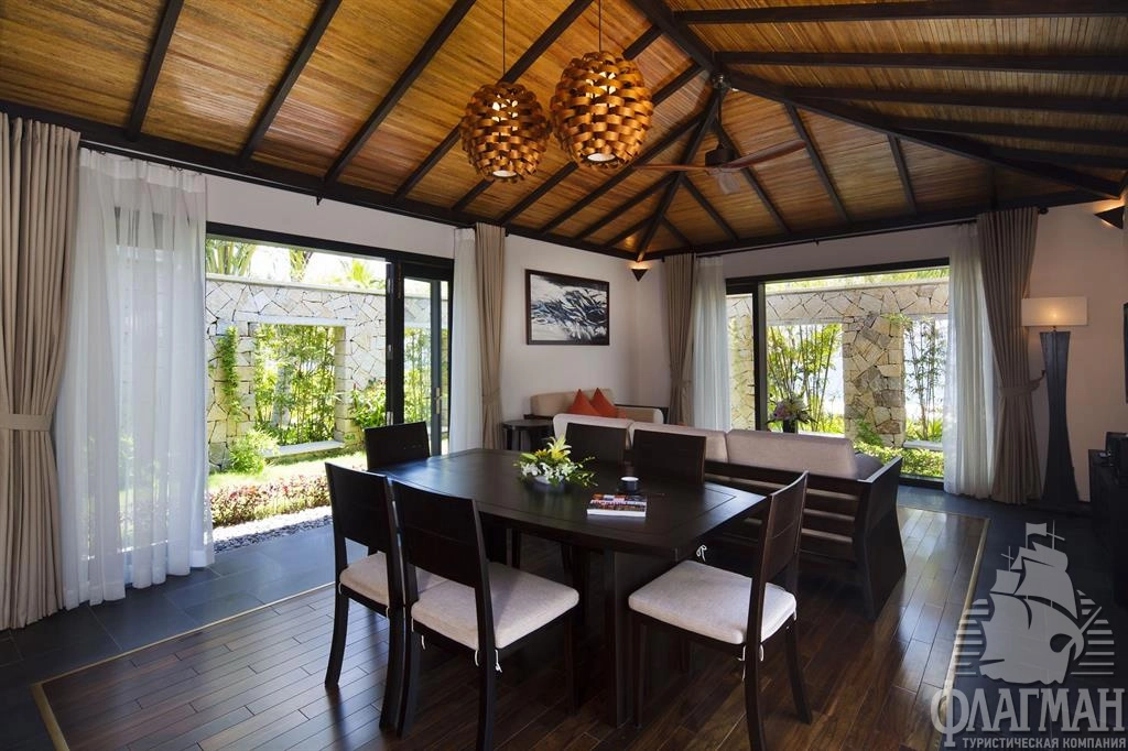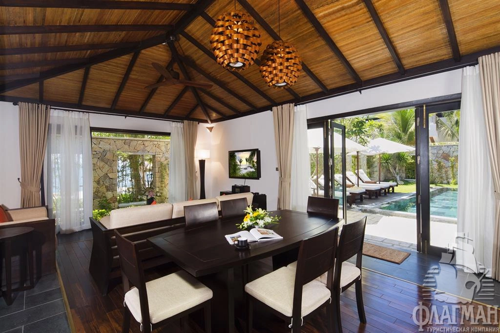 - 3 Ocean pool villa (450 кв.м, макс. 6 взрослых + 2 детей (до 6 лет), 3 спальни (кровати dbl), зона гостиной, мини-кухня, столовая зона, 3 ванные, свой бассейн, терраса и окно с видом на море)