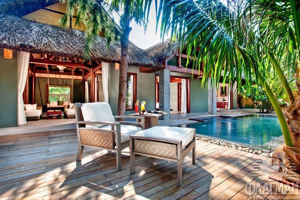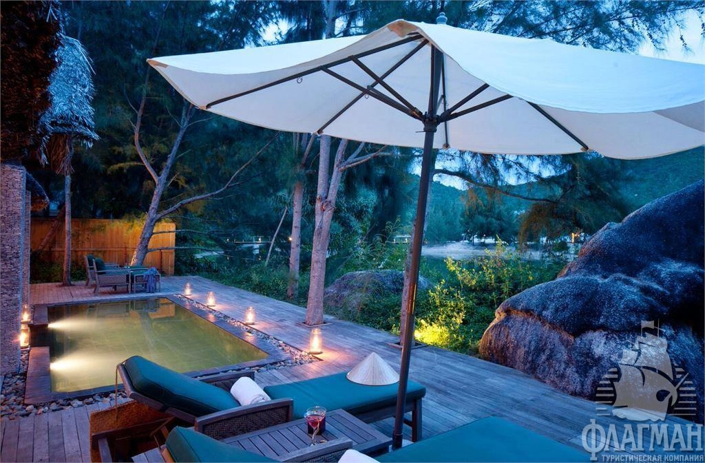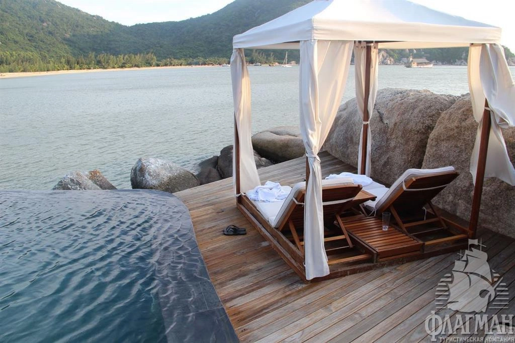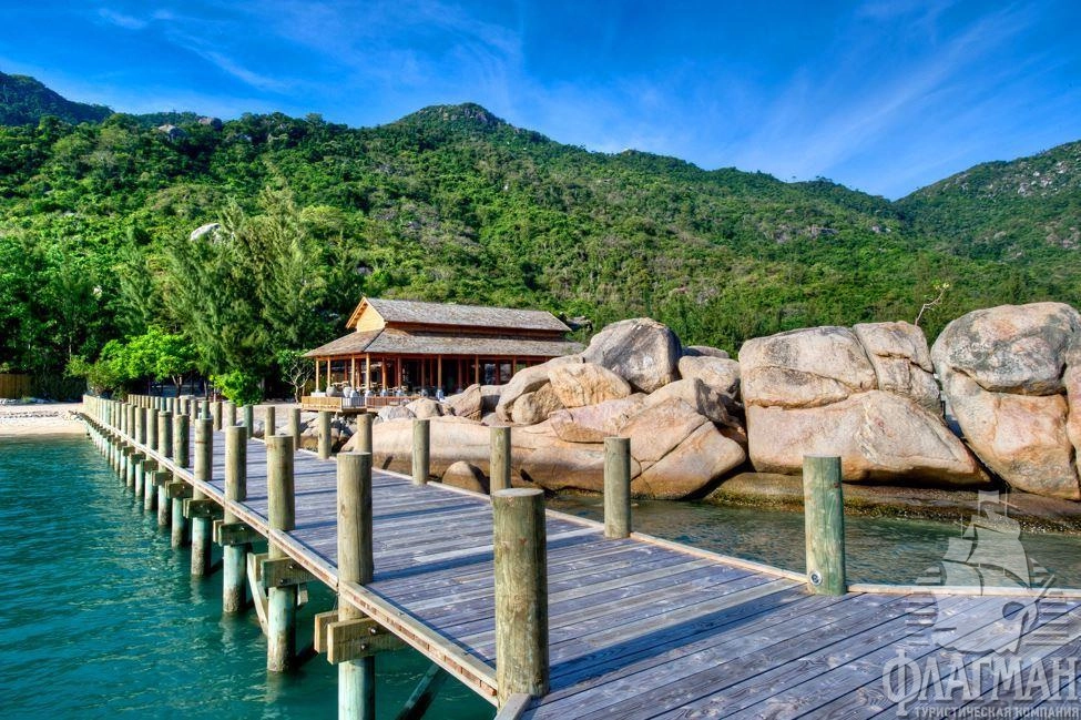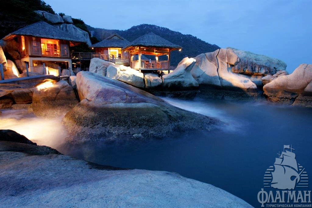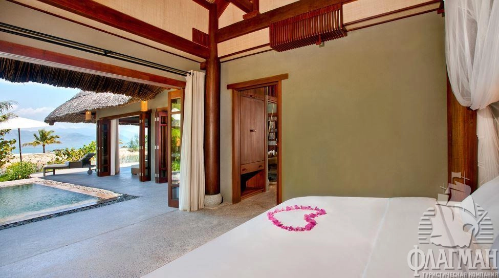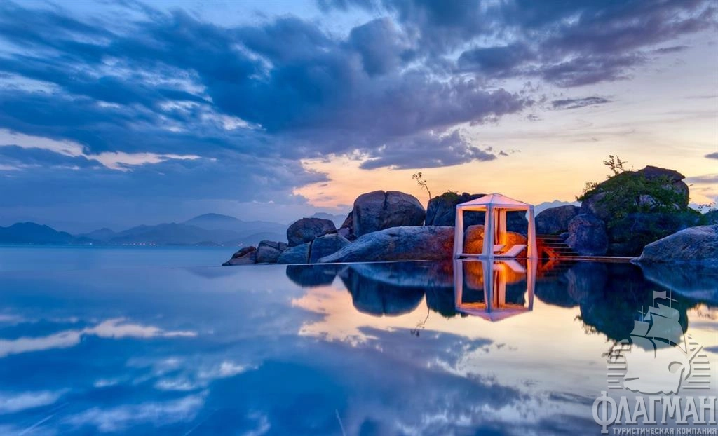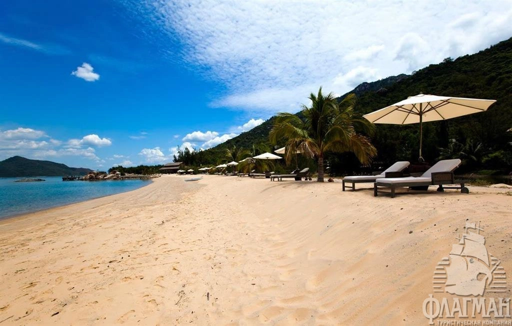 Ан Лам Нинх Ван Бэй 5* находится в 24 км к северу от центра города Нячанг (45 мин езды, авто+катер), на берегу моря, на уединенном пляже. Был открыт в 2011 г., последняя реновация проводилась в 2015 г. Номерной фонд отеля насчитывает 33 виллы, в которых есть бассейн, ванна, ТВ, кондиционер, сейф, мини-бар, питьевая вода, набор для приготовления чая/кофе, кофеварка, фен и бесплатный Wi-Fi. Рекомендуем для комфортного отдыха.