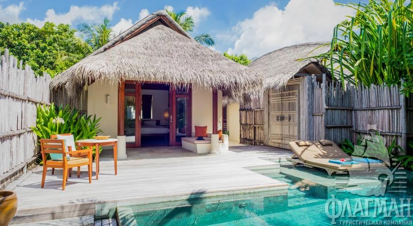 6 Anantara Pool Villa (180 м², макс. 3 или 2+2 чел.). Расположены на западной стороне острова с видом на закат, собственный бассейн, ванна-каскад.