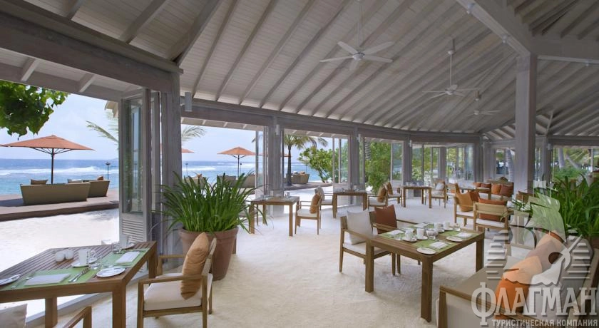3 ресторана на соседнем острове-отеле Anantara Dhigu (Fushi Cafе – основной ресторан, международная кухня, Fuddan – гриль и морепродукты, Terrazzo – итальянский)
