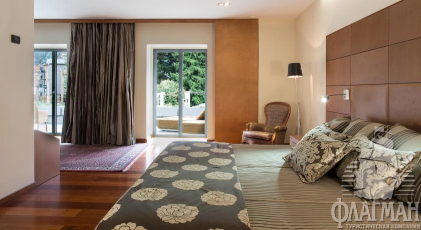 - 1 Presidential suite (две спальни с кроватями king-size, 2 ванные комнаты; холл, гостиная (есть кофемашина), плазменный телевизор и камин, терраса с шезлонгами с видом на сад, макс. 6 чел., 150 м2).