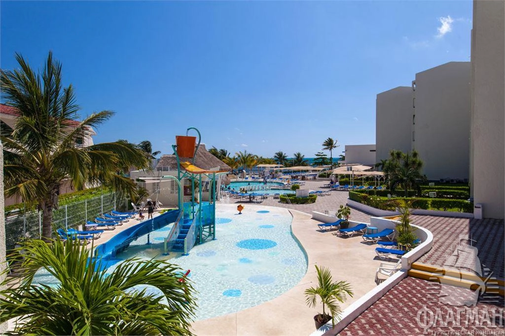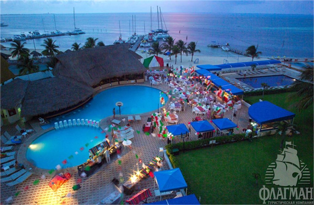 Отель Аквамарина Бич Отель Канкун 4* расположен в г. Канкун, в районе Playa Linda, на бульваре Kukulcan, рядом с отелем находится множество ночных клубов и ресторанов. Состоит из 6-этажного здания, для удобства имеется 2 лифта. К услугам гостей: 2 открытых бассейна, водные горки, джакузи в бассейне, терраса для загара, рестораны, гриль-снэк-бар, бар в бассейне, лобби-бар, конференц-залы и детская площадка. Рекомендуем для активного отдыха.