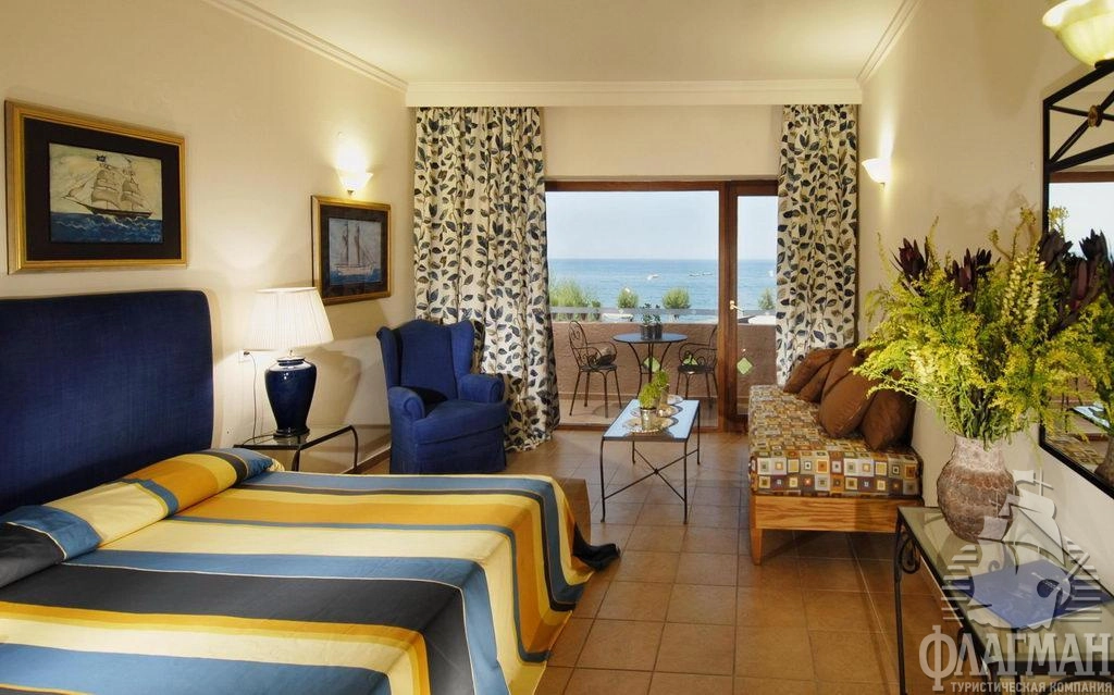 - standard room SV/ GV (вид на море или сад, спальня с зоной гостиной, основная кровать – двуспальная или 2 односпальные, доп. – диван-кровать, макс. 3 чел., 24,4 м2);