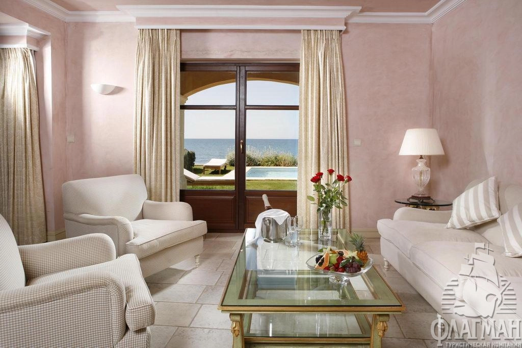 - deluxe junior villa private pool SV (расположены в непосредственной близости от моря, оформлены в критском стиле, спальня с зоной гостиной, основная кровать – двуспальная или 2 односпальные, доп. – диван-кровать, мраморная ванная комната, терраса с шезлонгами и индивидуальным бассейном, макс. 2 чел., 125 м2),