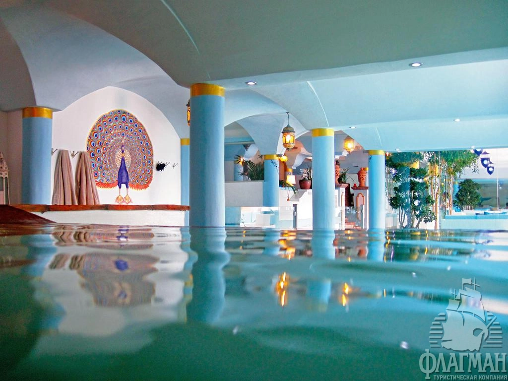 - На центральной площади отеля находятся бар, главный ресторан с террасами и большой бассейн.