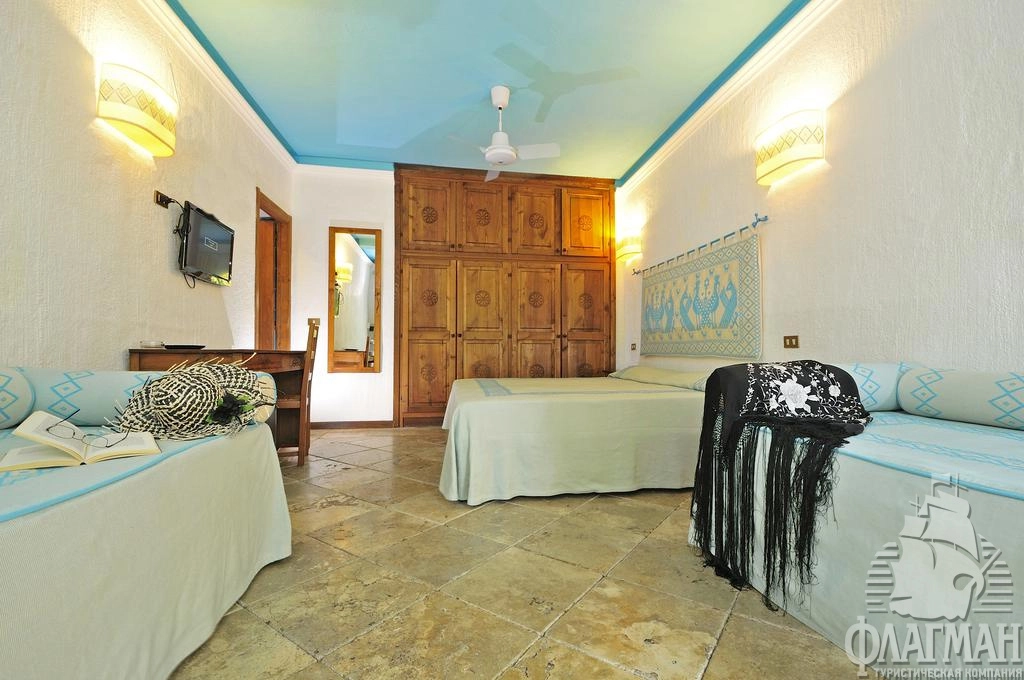 Одно- и двухэтажные номера, оформленные в средиземноморском стиле, рассчитаны на 2,3 или 4 гостей и находятся в 100-500 метрах от моря. 380 номеров: