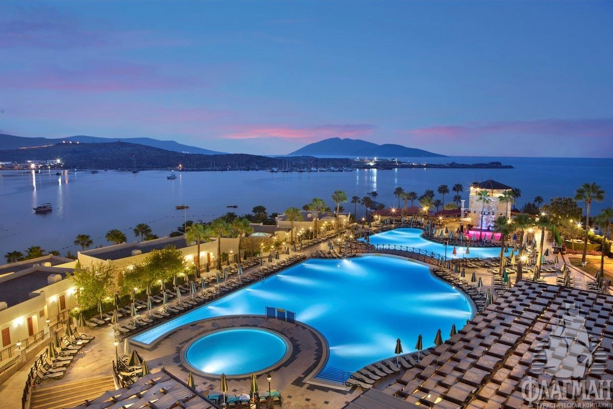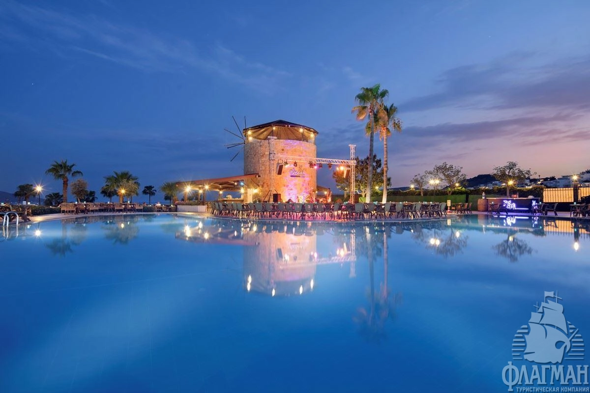 Отель Астерия Бодрум Резорт 5* расположен на самом берегу моря в посёлке Гюмбет, в 3,5 км от Бодрумского амфитеатра и в 4 км от центра Бодрума. К услугам гостей: крытый, открытый и релакс бассейны, аквапарк с 2 горками, бары, рестораны, СПА-центр, фитнес-центр и мини-клубы. Можно принять участие в разнообразных развлечениях: занятиях дайвингом, виндсерфингом, каноэ, посетить кабаре, дискотеку или шоу с живой музыкой. Рекомендуем для комфортного семейного отдыха.