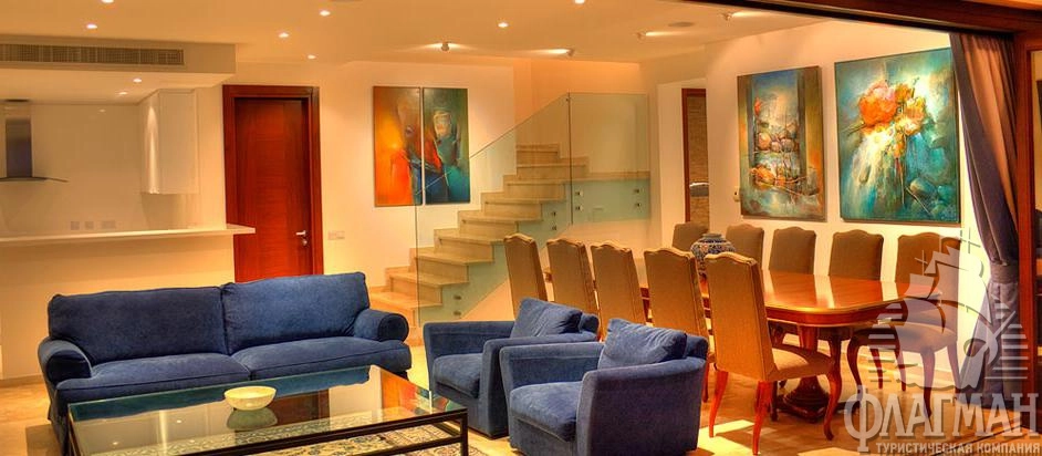 - Presidential Suite Room (гостиная, 2 спальни, 2 ванных комнаты, терраса с личным бассейном и джакузи, клубные привилегии, макс. 4+1 чел.),