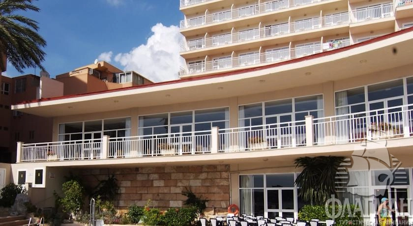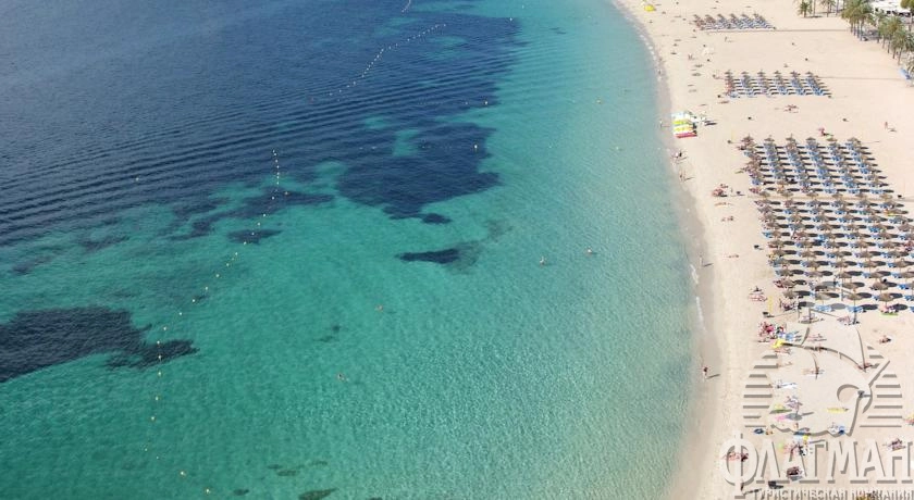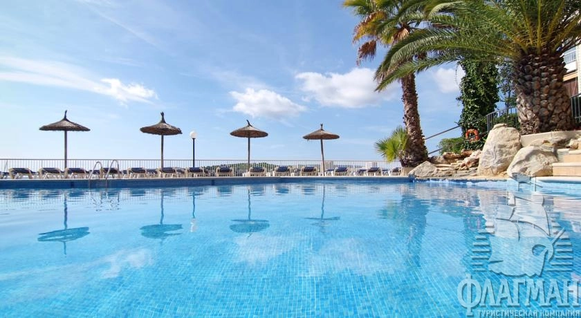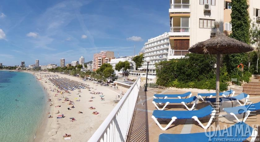 расположен в 25 км от аэропорта, в 14 км от центра г. Пальма, в 200 м от центра туристической зоны Магалуф, на первой линии.