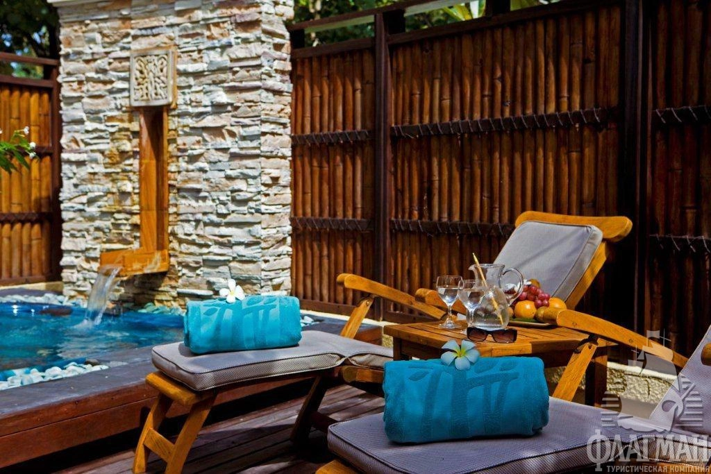 2 Vabbinfaru Pool Villa (220 м², макс. 3 или 2+1 чел.). Виллы имеют раздельные спальню и гостиную, приватный большой сад с видом на океан, бассейн с уголком джакузи.