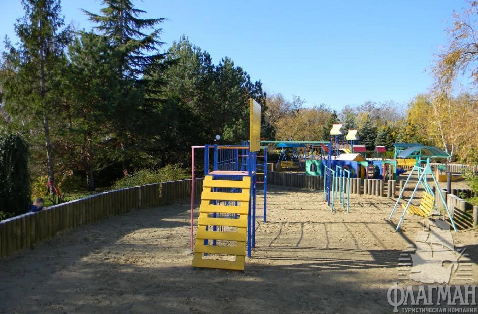 - Территория огороженная, охраняемая, зеленая, благоустроенная, составляет 11,52 га, из них 6 га лесопарка с многолетними дубами и соснами, 5 га газонов с декоративными растениями и 1000 кв. м. цветников.