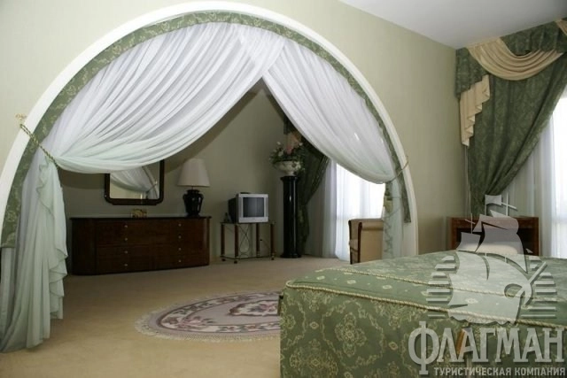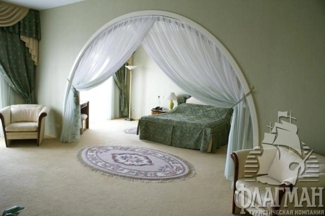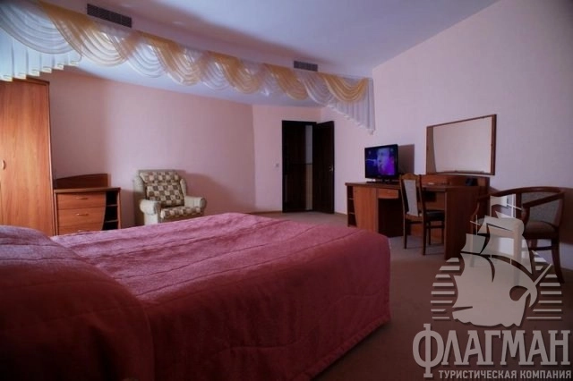 в номере: мебель, телевизор, DVD, холодильник, электрочайник, посуда, кондиционер, сейф, санузел с ванной, фен, гладильная доска, халат, тапочки, предметы гигиены. Номера расположены со 2-го по 4-й этажи. Одно дополнительное место кресло-кровать.