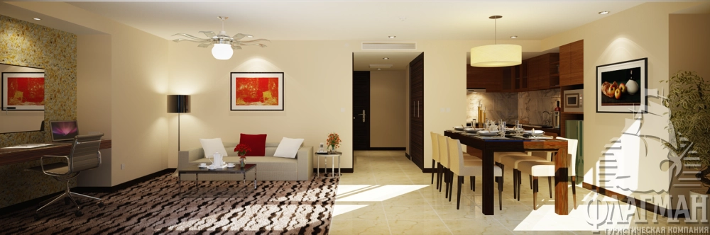 - 20 executive suite ocean view (130 кв.м, макс. 2+2 чел, спальня, межкомнатная дверь, гостиная, столовая зона, мини-кухня, кофеварка, микроволновая печь, утюг, гладильная доска, фен)