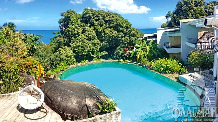 Блисс Отель Сейшеллс 4* - уютный отель-бутик всего на 15 номеров, часть из которых находится непосредственно на берегу, другая часть в - тропическом саду, через дорогу от небольшого песчаного пляжа между гранитных скал. В 10 минутах езды располагается главный пляж о. Маэ - Beau Vallon. Часть номеров располагается на возвышенности, потому из номеров открывается потрясающий панорамный вид на океан. К услугам гостей: спа-центр, бар, ресторан международной кухни, магазин сувениров, небольшая библиотека и игровая комната. "Фишка" гостиницы - естественный бассейн в скалах вокруг которого расположены бунгало. Рекомендуем для спокойного уединённого отдыха и проведения медового месяца.