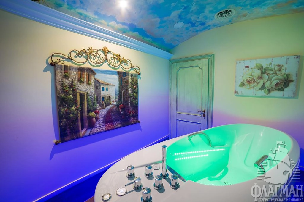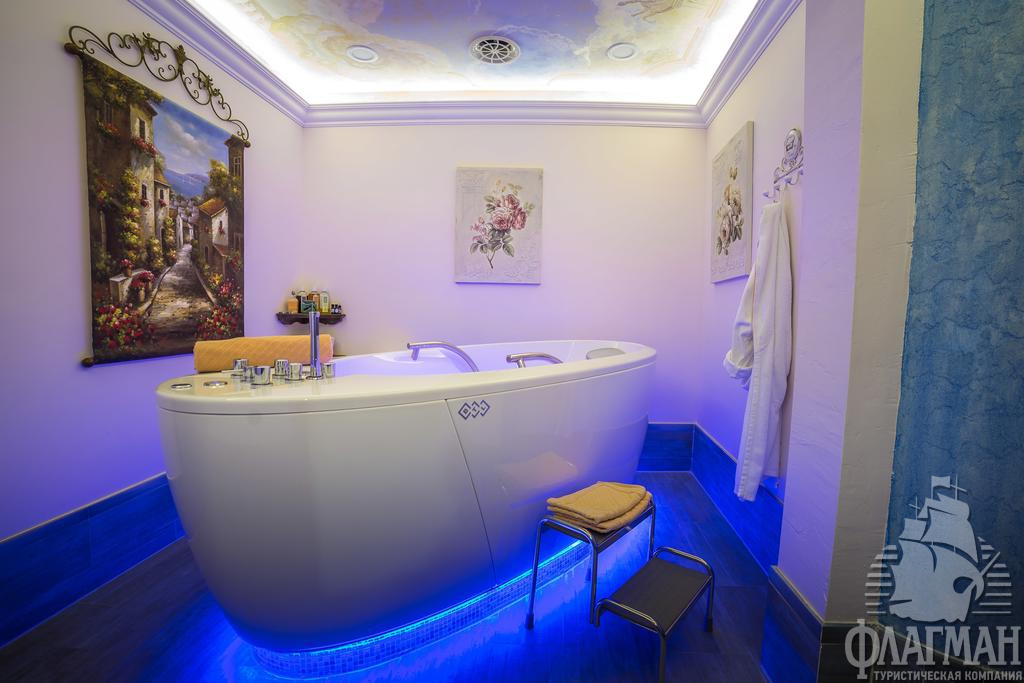 2 номера Wellness Suite (94 кв. м, вид курортную зону, балкон, спальня, гостиная, ванная комната с душем, джакузи, сауной, биде, гардеробная комната, кровать king size, возможна дополнительная кровать, возможен коннект с Suite Exclusive)