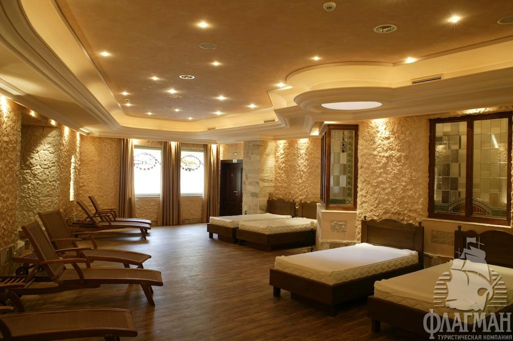 комната отдыха с шезлонгами и кровати с подогреваемыми водяными матрасами,