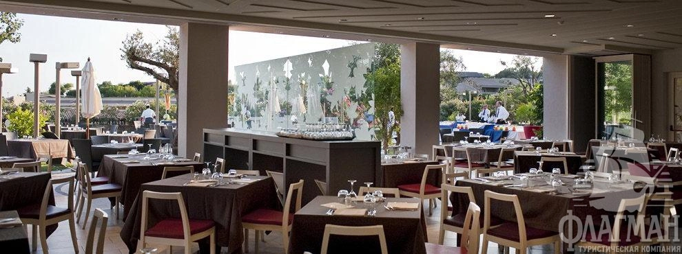 Питание: завтрак и ужин подаются в ресторане Bouganville. Предлагаются блюда итальянской и традиционной сардской кухни, есть специальное детское меню. Каждый вечер шеф-повар проводит демонстрацию приготовления блюд. Пообедать по меню можно в ресторанах La Terrazza, La Pergola или ресторане-пиццерии Le Dune возле пляжа, где также готовят отличные блюда на гриле. Кроме этого можно поужинать в a la carte ресторане Luna, где к изысканным блюдам подаются элитные вина и ликеры. Напитки за ужином оплачиваются дополнительно.