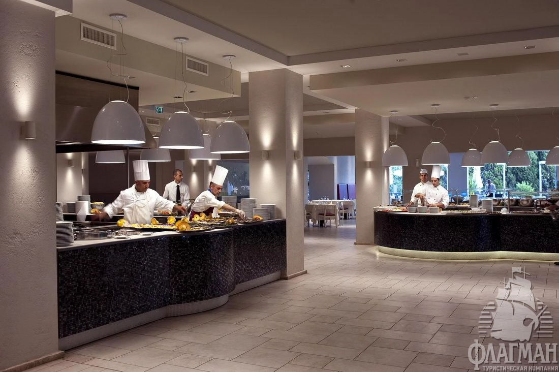 Питание: завтрак и ужин подаются в ресторане Bouganville. Предлагаются блюда итальянской и традиционной сардской кухни, есть специальное детское меню. Каждый вечер шеф-повар проводит демонстрацию приготовления блюд. Пообедать по меню можно в ресторанах La Terrazza, La Pergola или ресторане-пиццерии Le Dune возле пляжа, где также готовят отличные блюда на гриле. Кроме этого можно поужинать в a la carte ресторане Luna, где к изысканным блюдам подаются элитные вина и ликеры (напитки за обедом и ужином оплачиваются дополнительно). Есть детский ресторан.